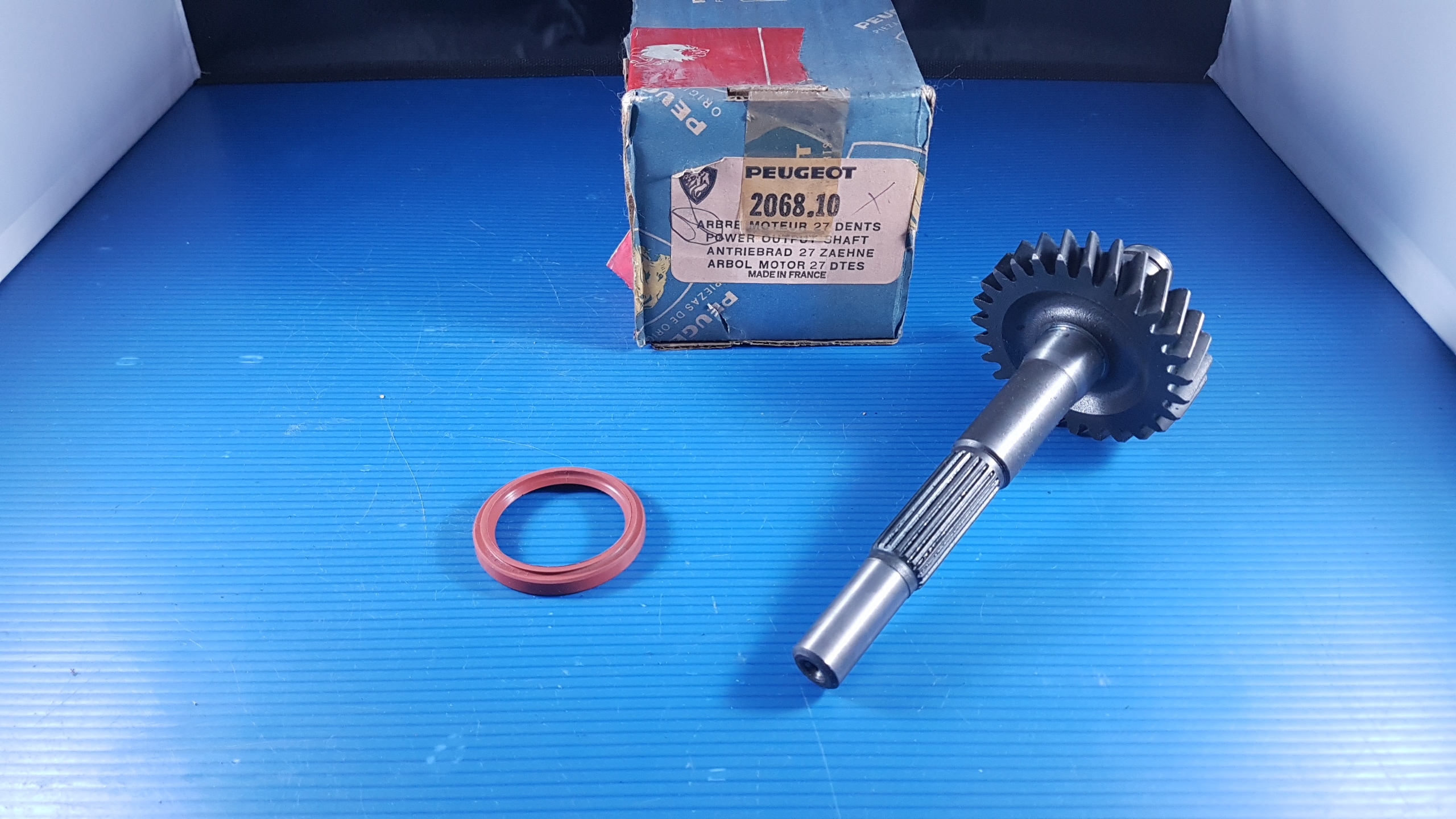 Arbre moteur embrayage 27 dents pour boite de vitesse , pièce neuve d’origine constructeur avec sa cire de protection.