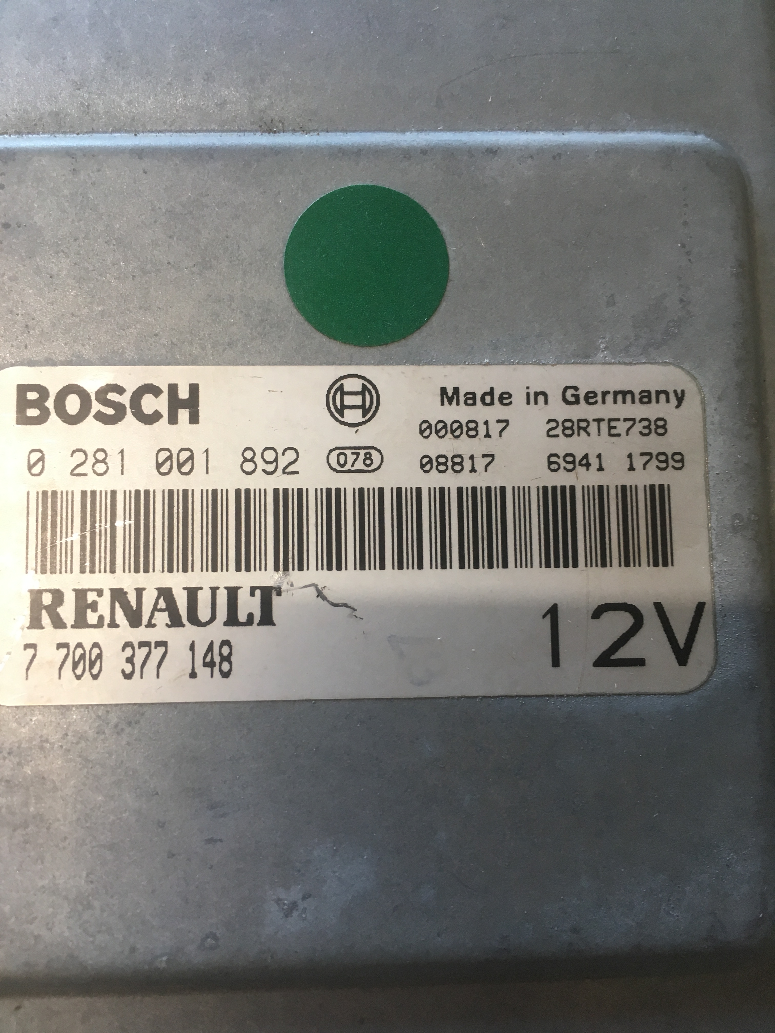 Référence BOSCH 0281001892 (0 281 001 892) ou référence d’origine Renault 77 00 377 148 ( 7700377148 )