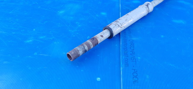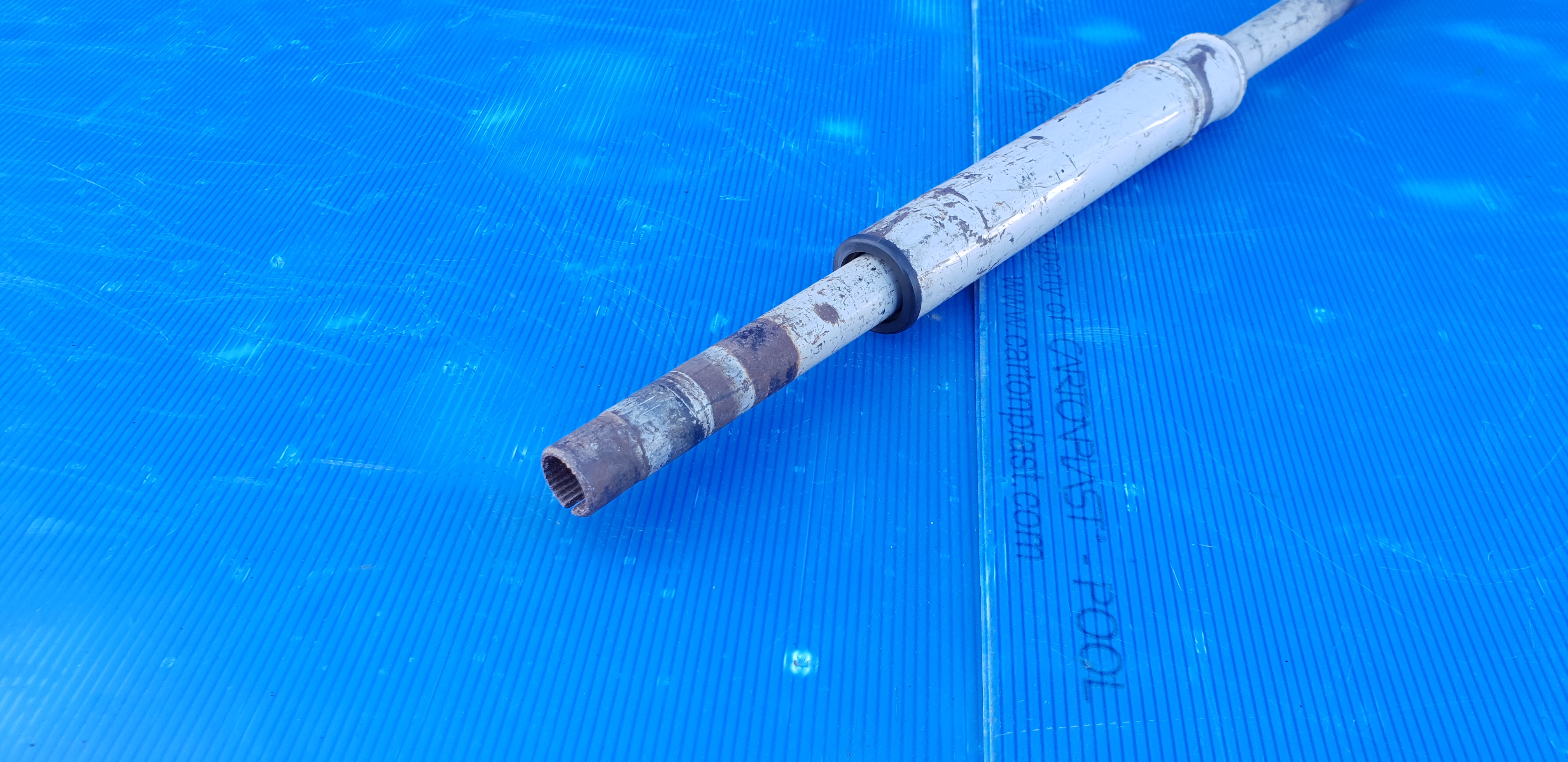 Colonne de direction avec tube de guidage, pièce d’origine d’occasion en bel état, caoutchouc en bon état, rouille superficielle, à peindre.