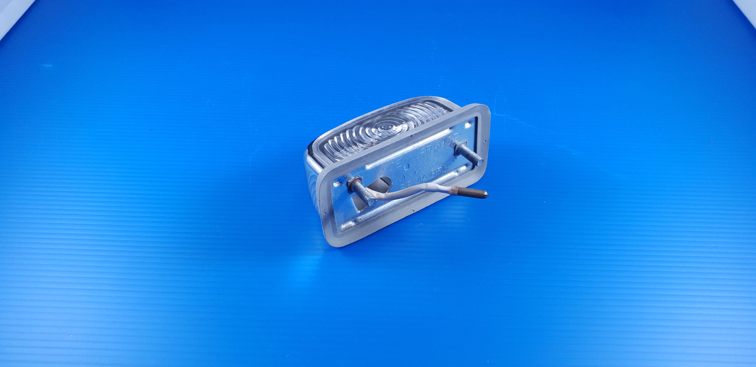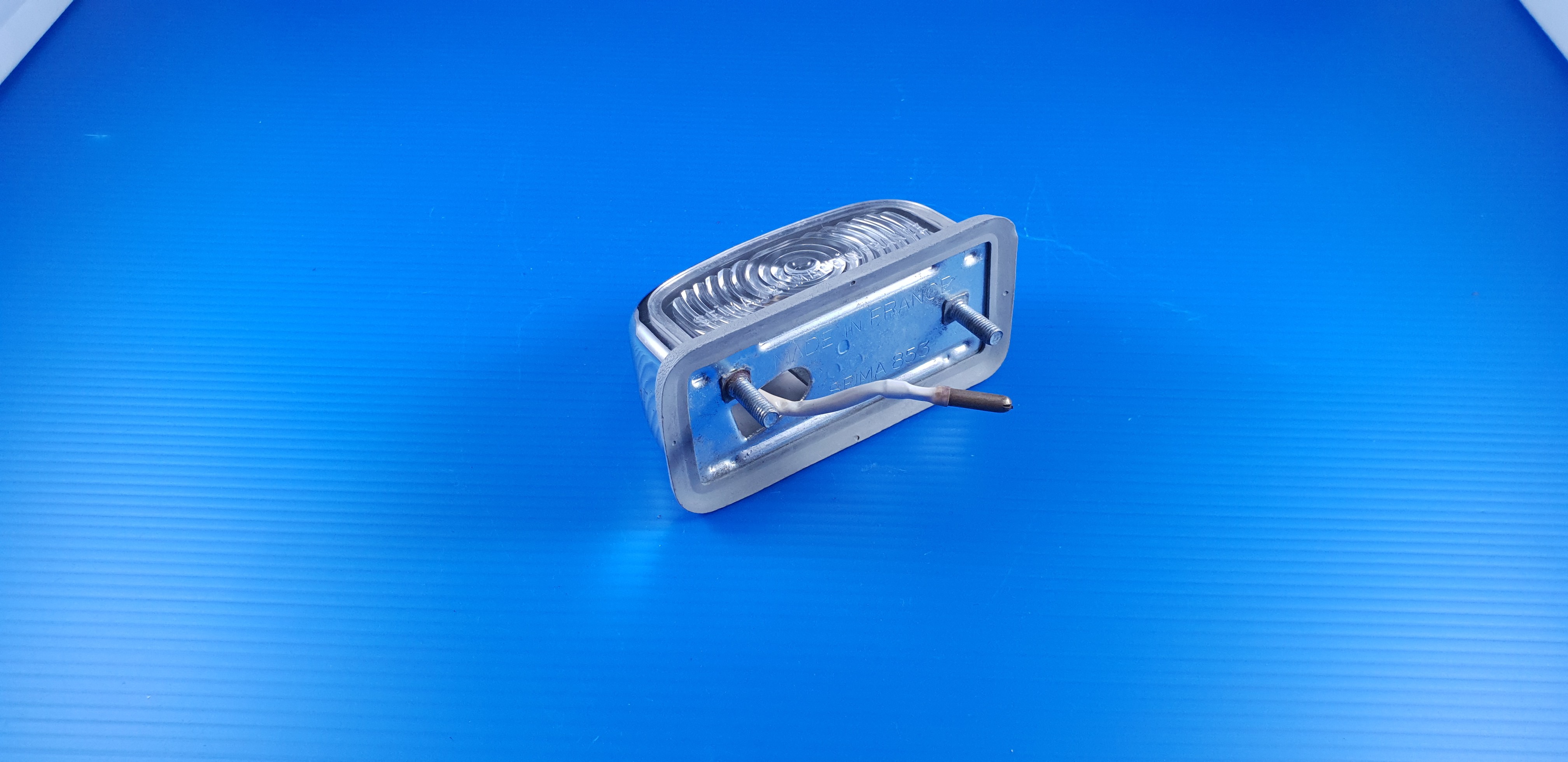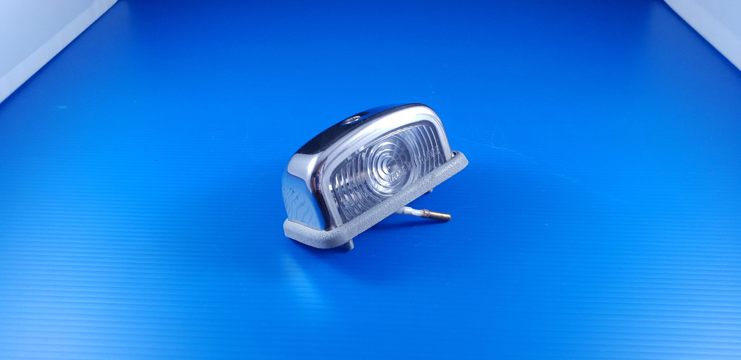 Feu plaque d’immatriculation SEIMA 121 chromé, pièce d’origine d’occasion en très bel état, très peu utilisé, stock ancien