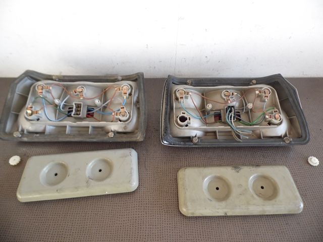 Feux complets (cabochon + platine porte-ampoules) gauche et droit d’occasion en bon état.