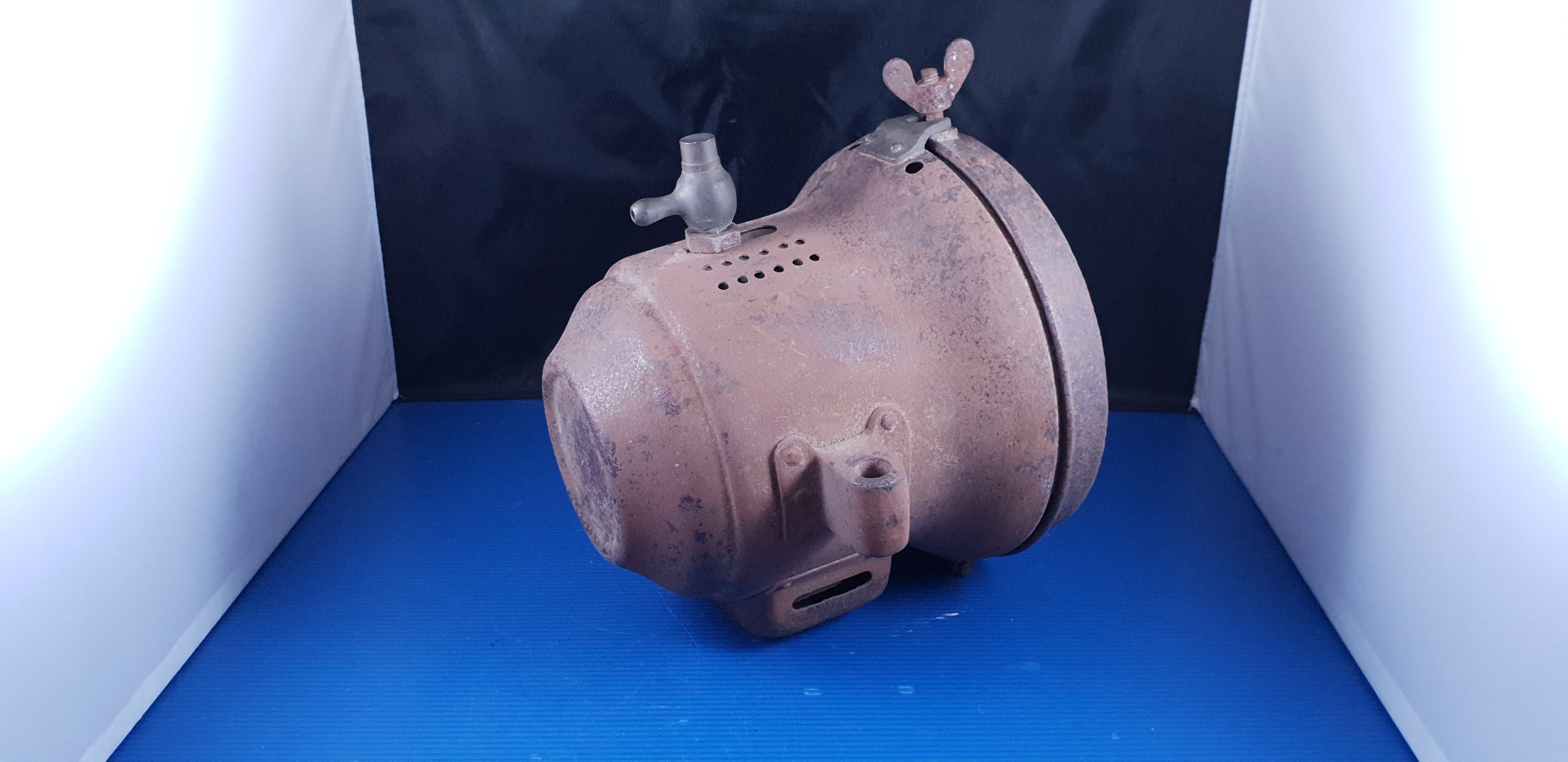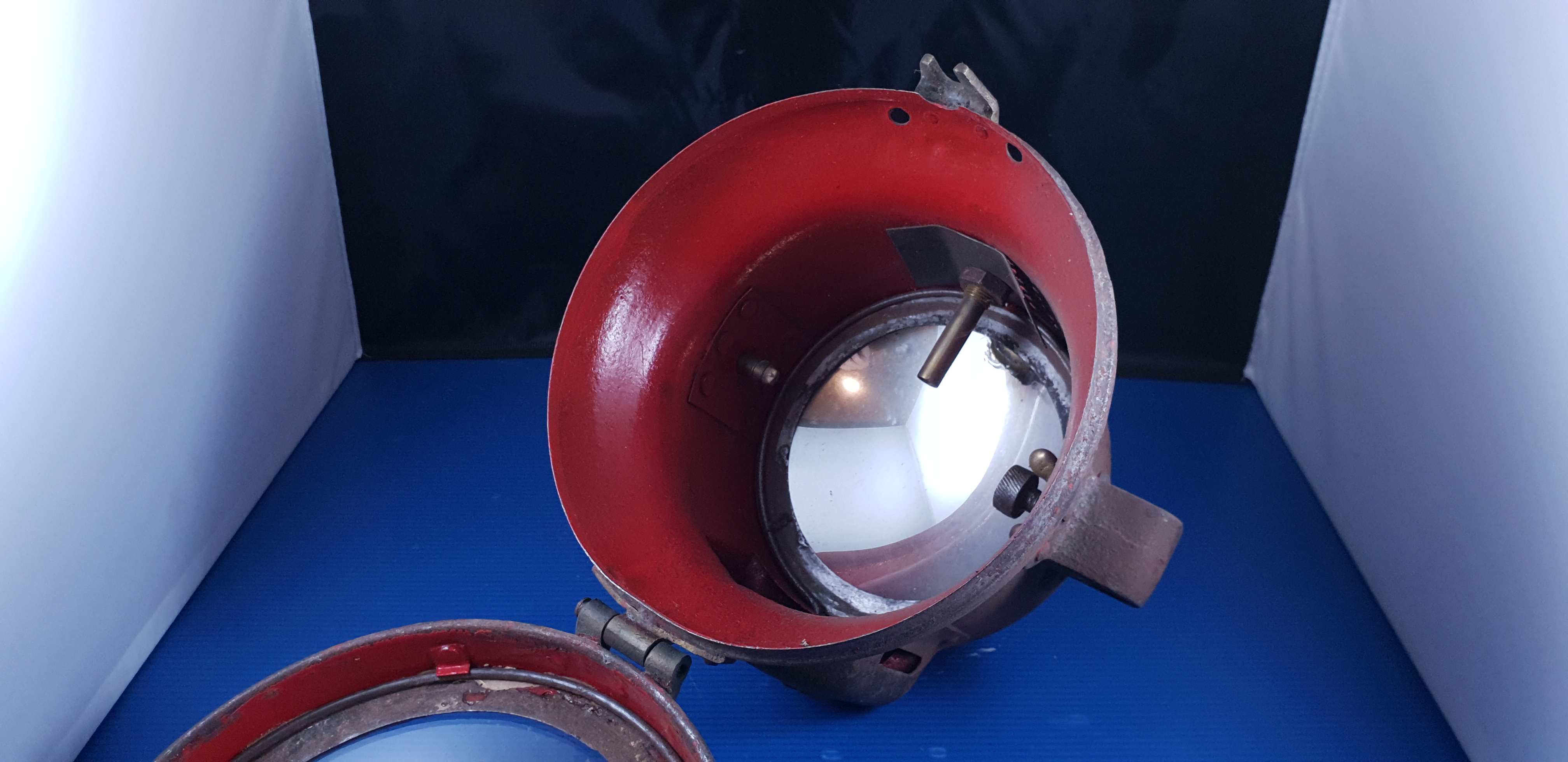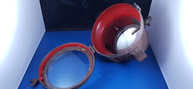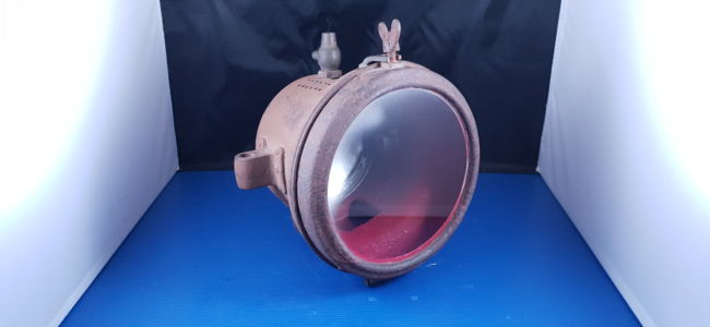 Gros phare ancien acétylène en tôle, pièce d’époque du début du siècle dernier en assez bel état