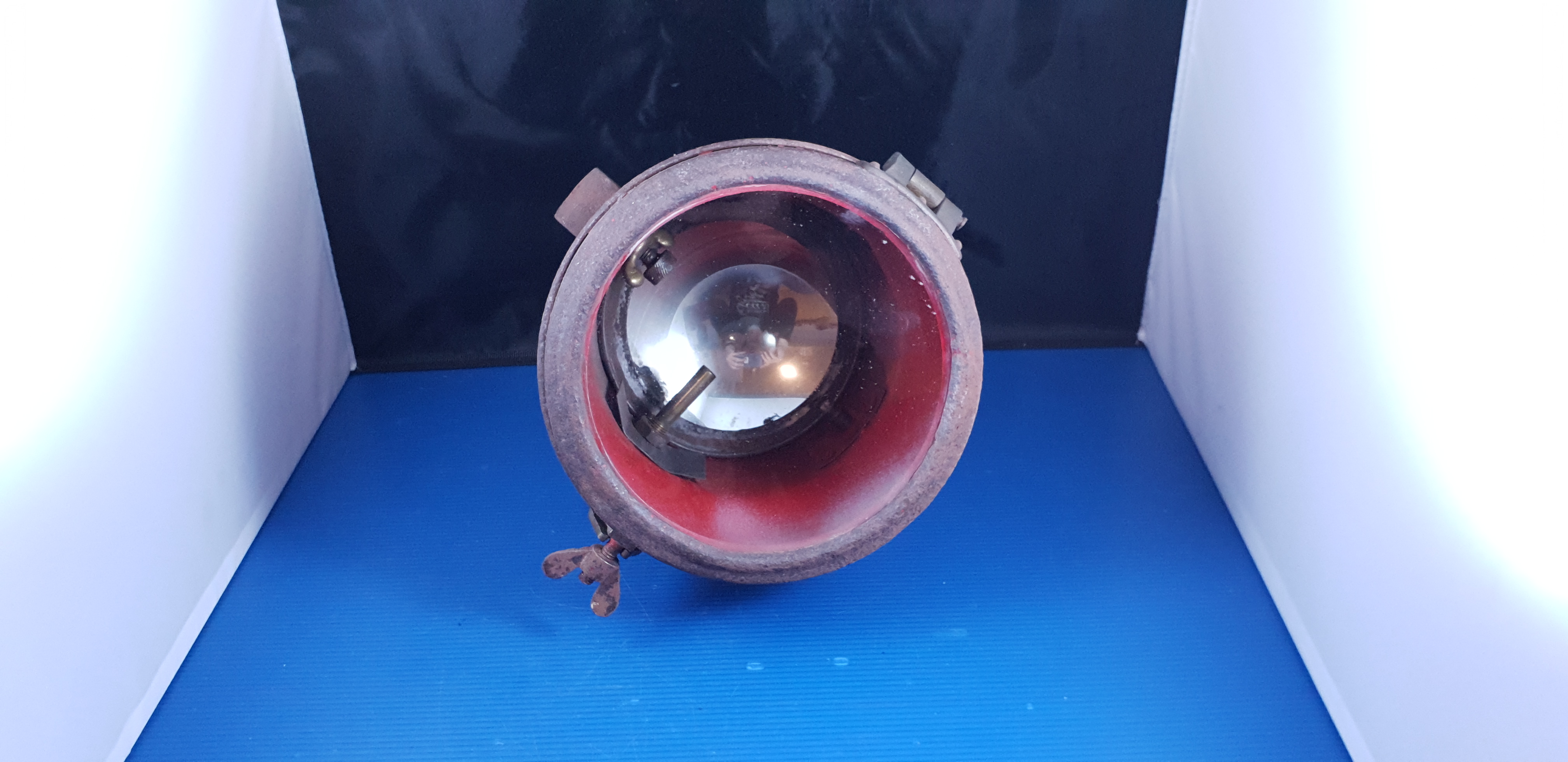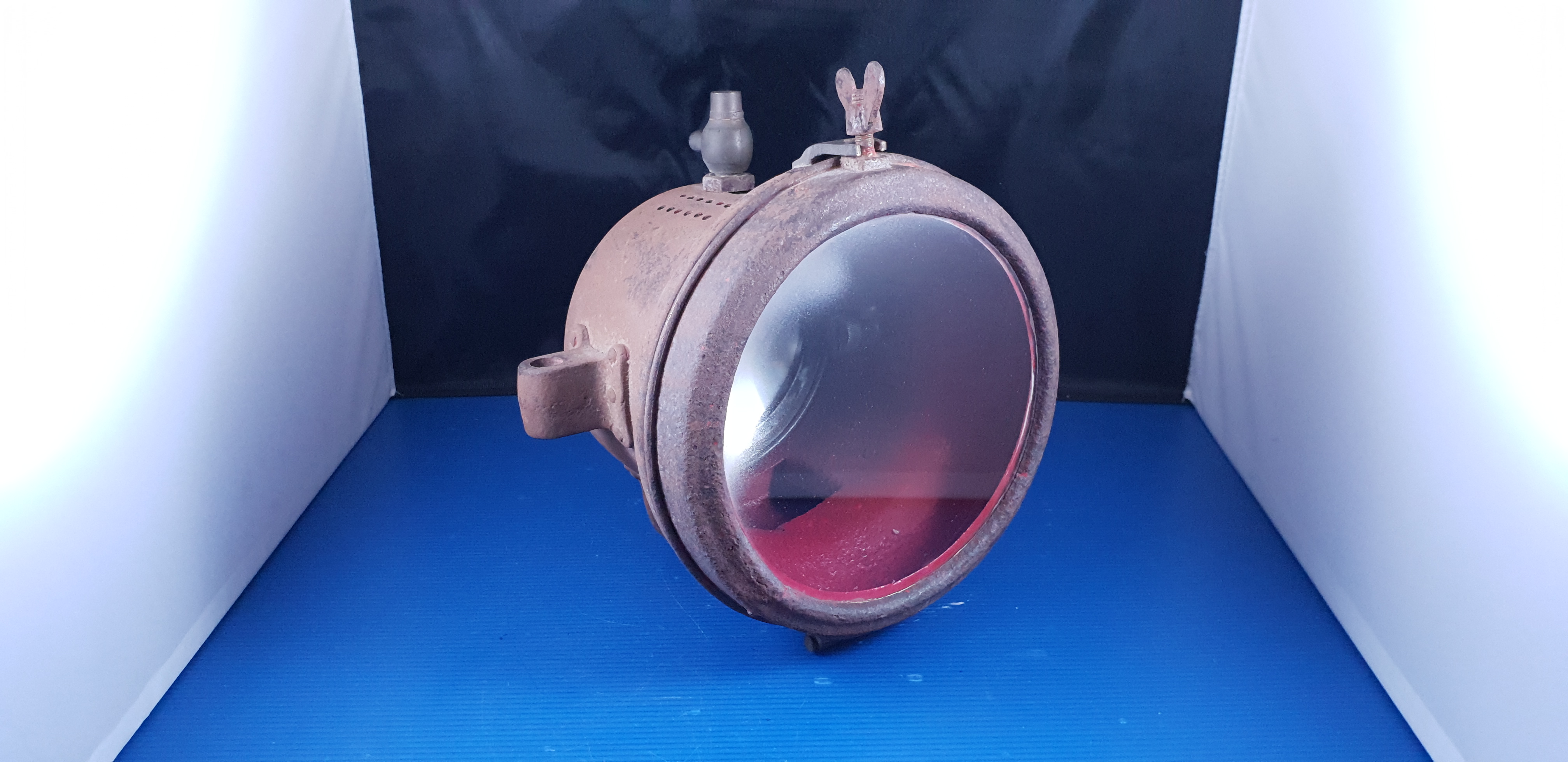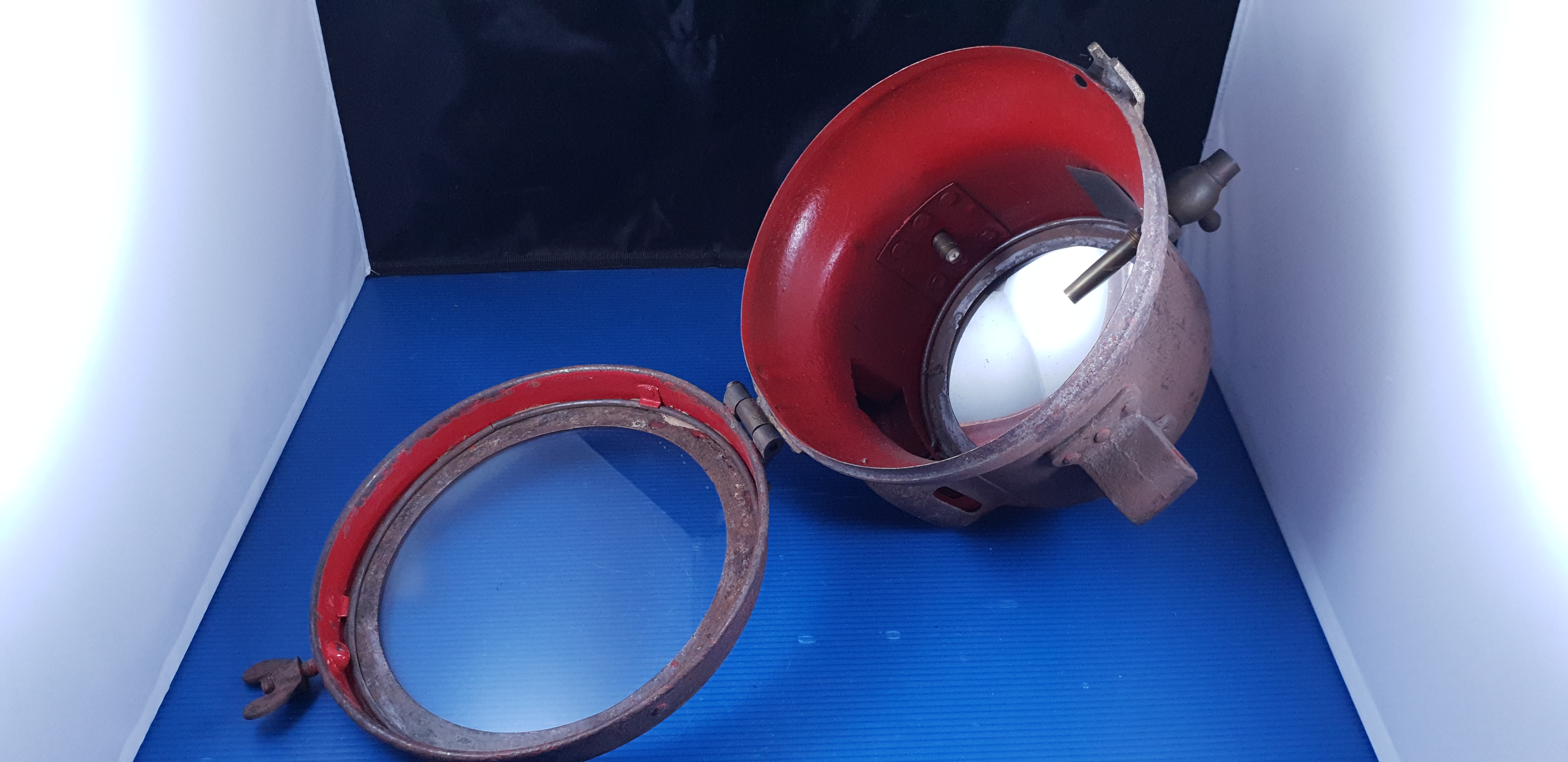 Gros phare ancien acétylène en tôle, pièce d’époque du début du siècle dernier en assez bel état