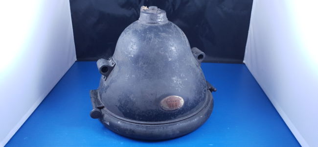 Verre et réflecteur argenté en très bel état, petites bosses sur la coque.