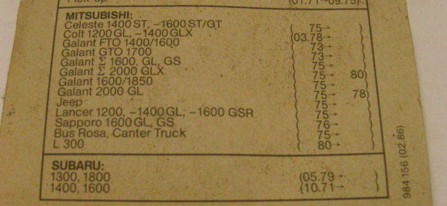 MITSUBISHI CELESTE / COLT / GALANT / JEEP / LANCER / SAPPORO / BUS ROSA / CANTER TRUCK / L300