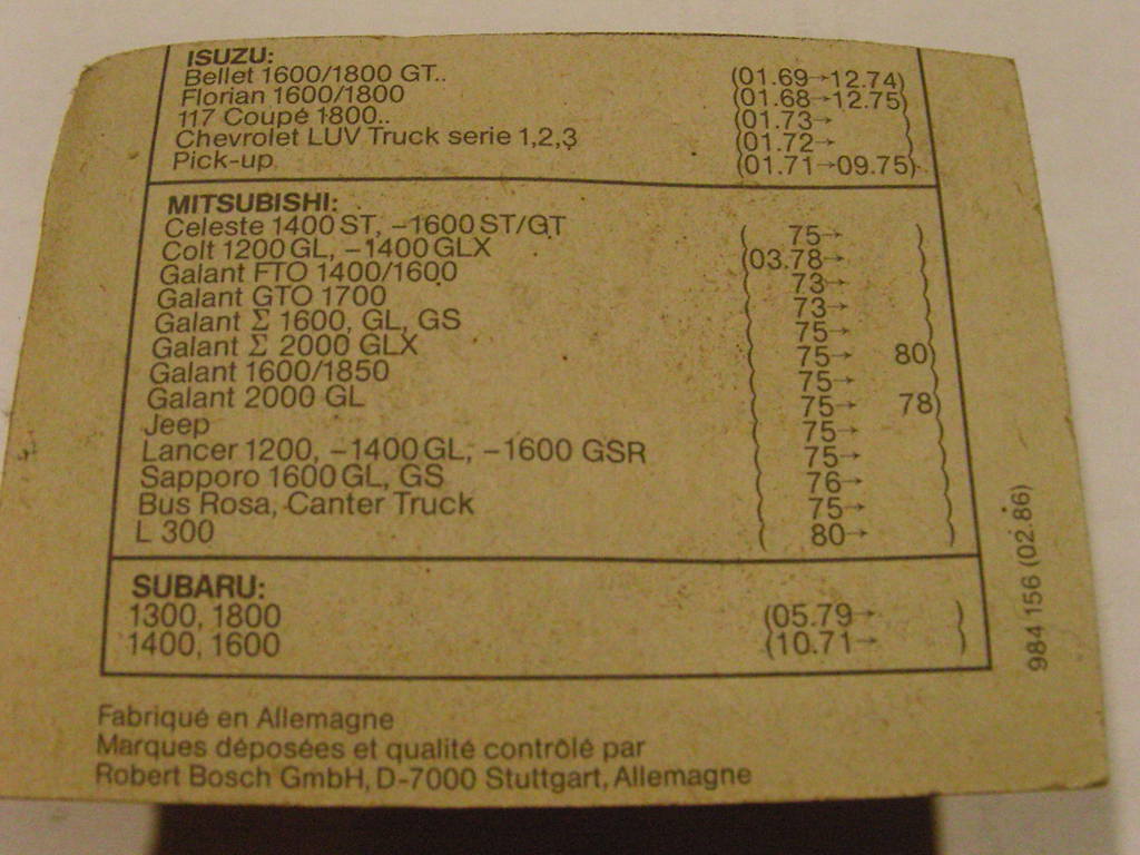 BOSCH 904 : ISUZU BELIET / FLORIAN / 117 COUPE /CHEVROLET LUV TRUCK / PICK UP