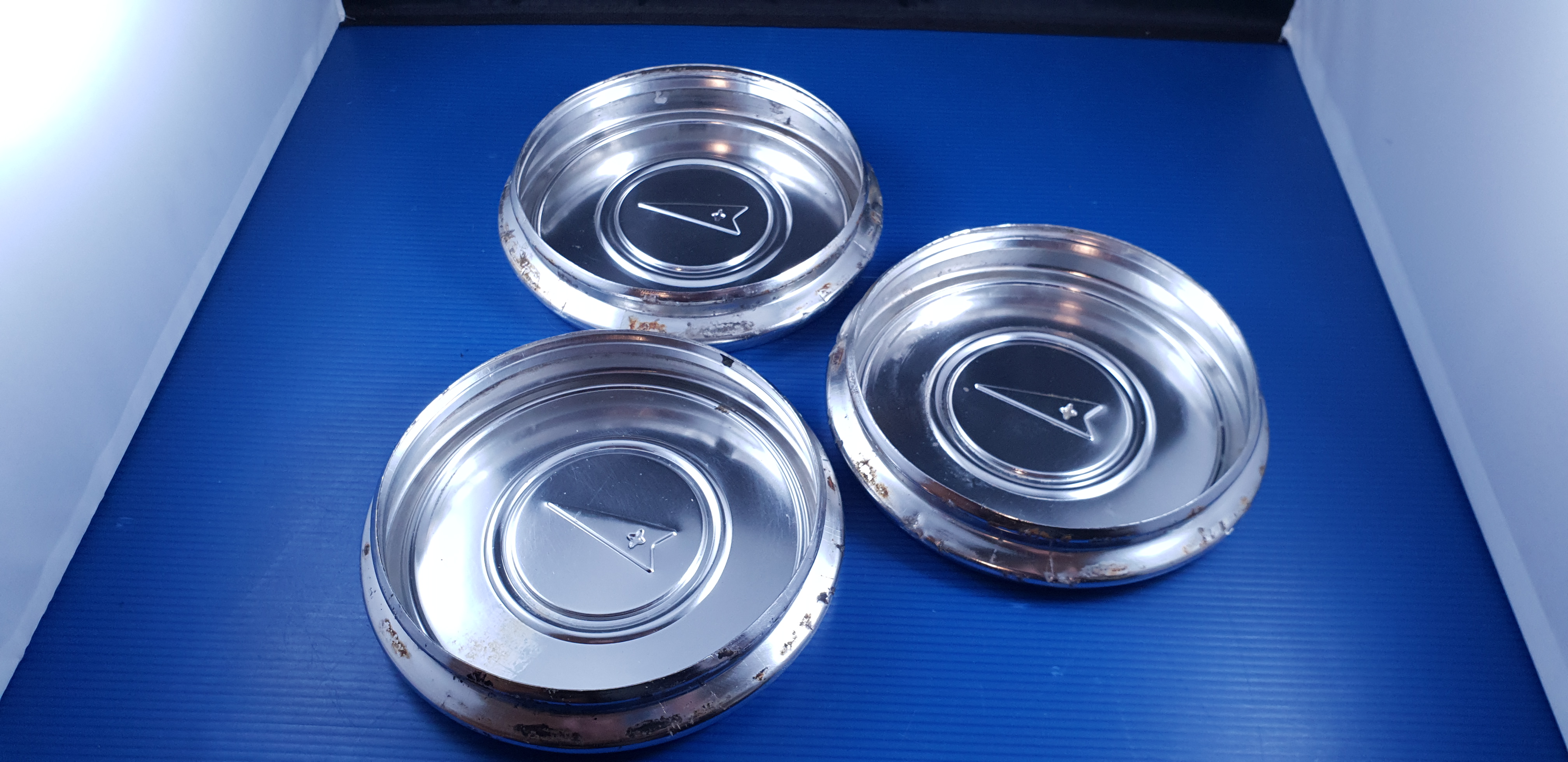 Jeu de 3 enjoliveurs de roue, pièces d’origine d’occasion en bel état