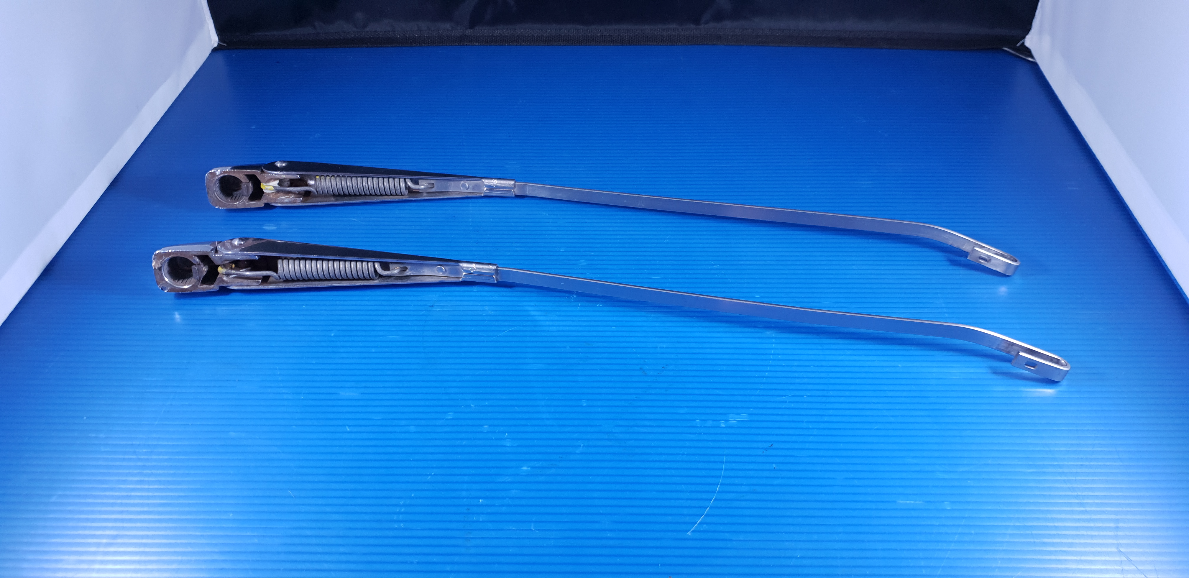 Paire de bras d’essuie glace inox BOSCH, pièces d’origine d’occasion en très bel état.