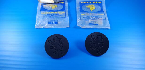 Paire d’enjoliveurs caches centraux de roue avec lion PEUGEOT 104 NEUF d’origine