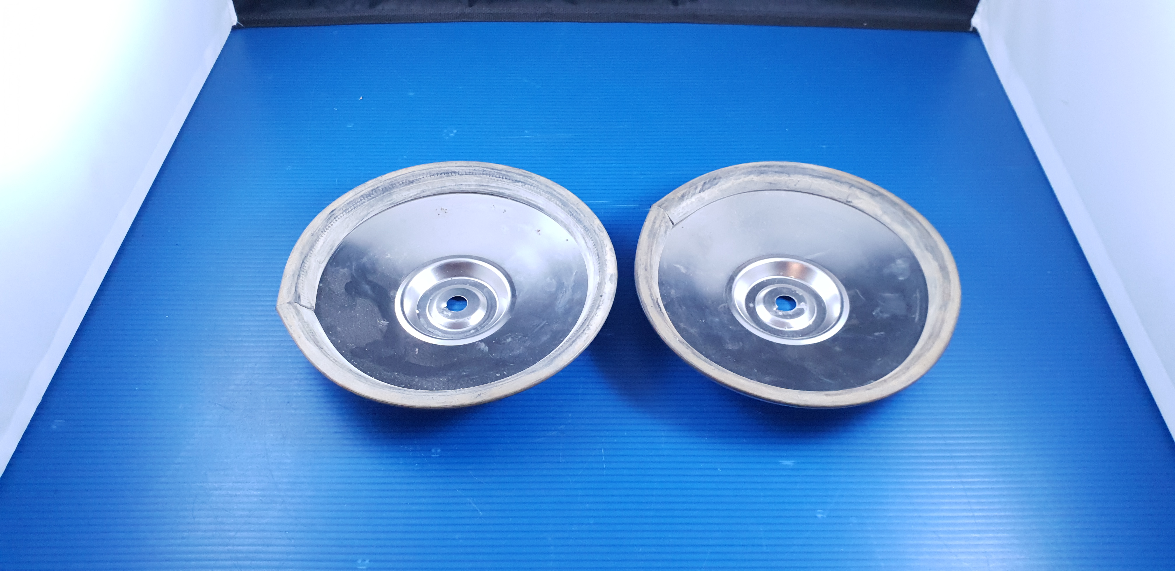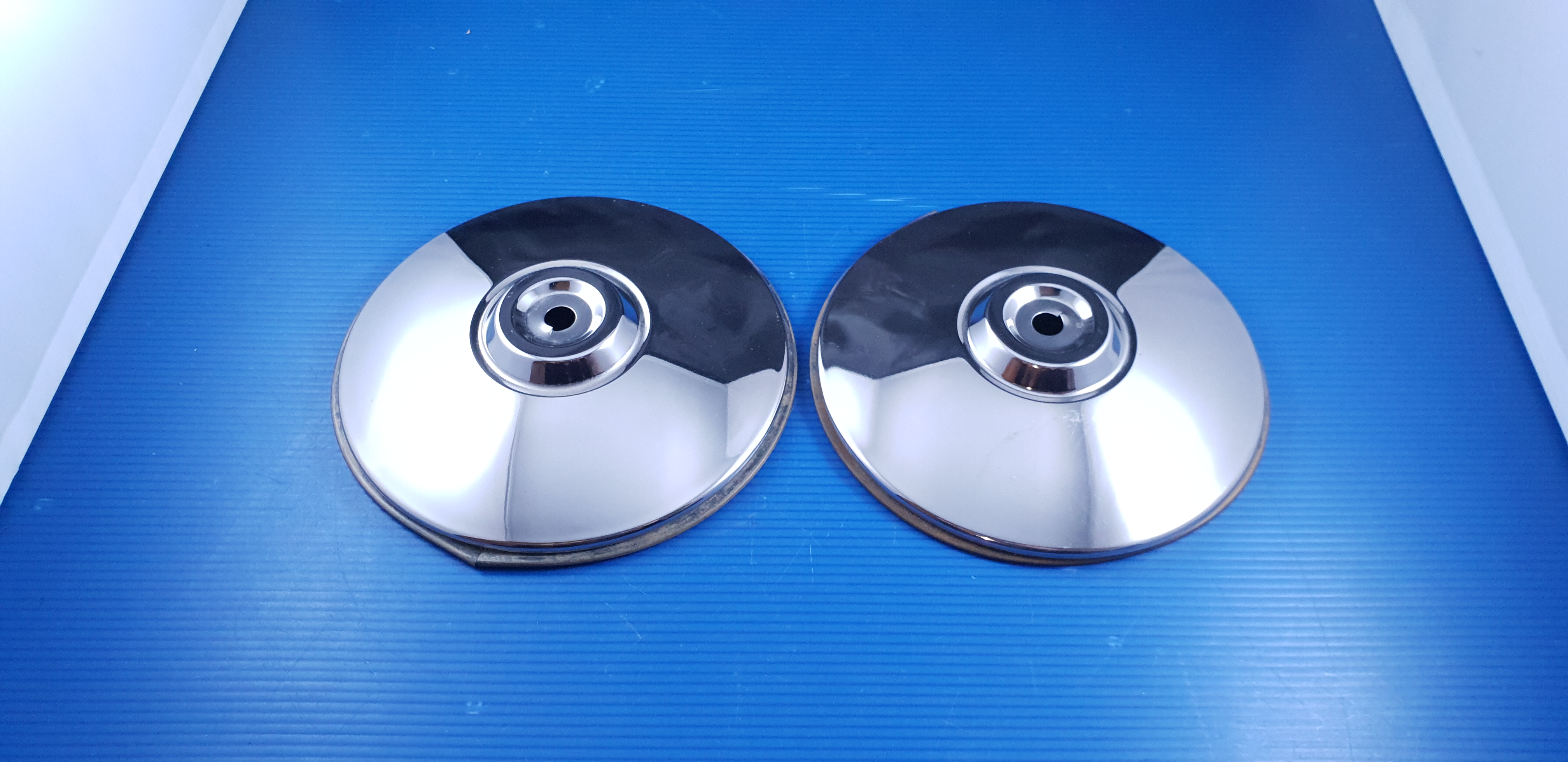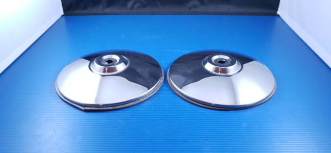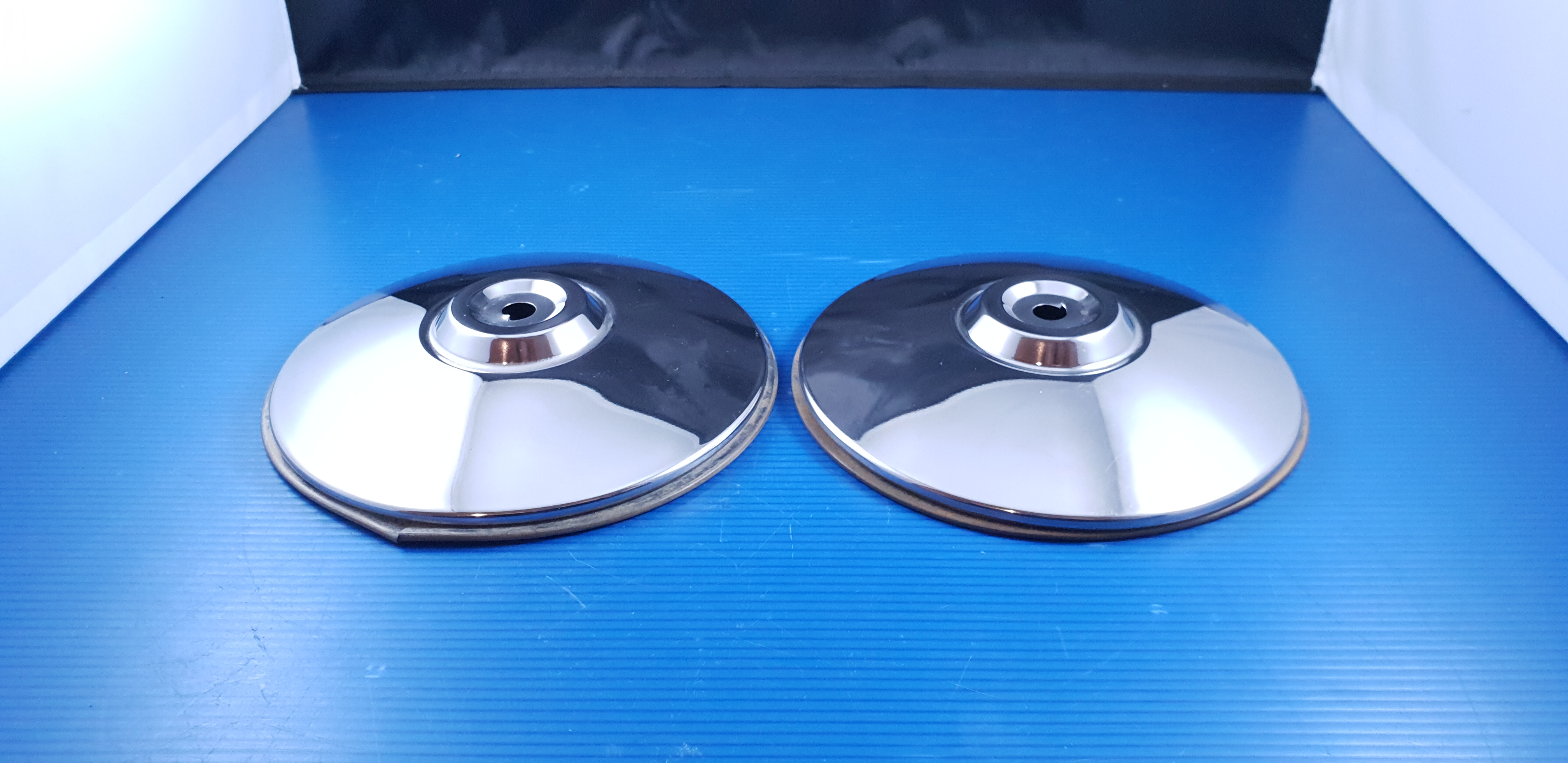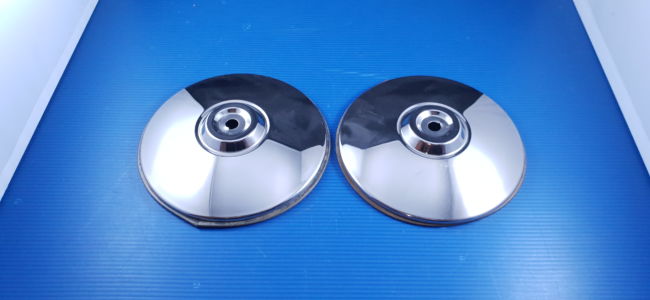 Paire d’ enjoliveurs de roue, pièces neuves d’origine stock ancien, avec joints.