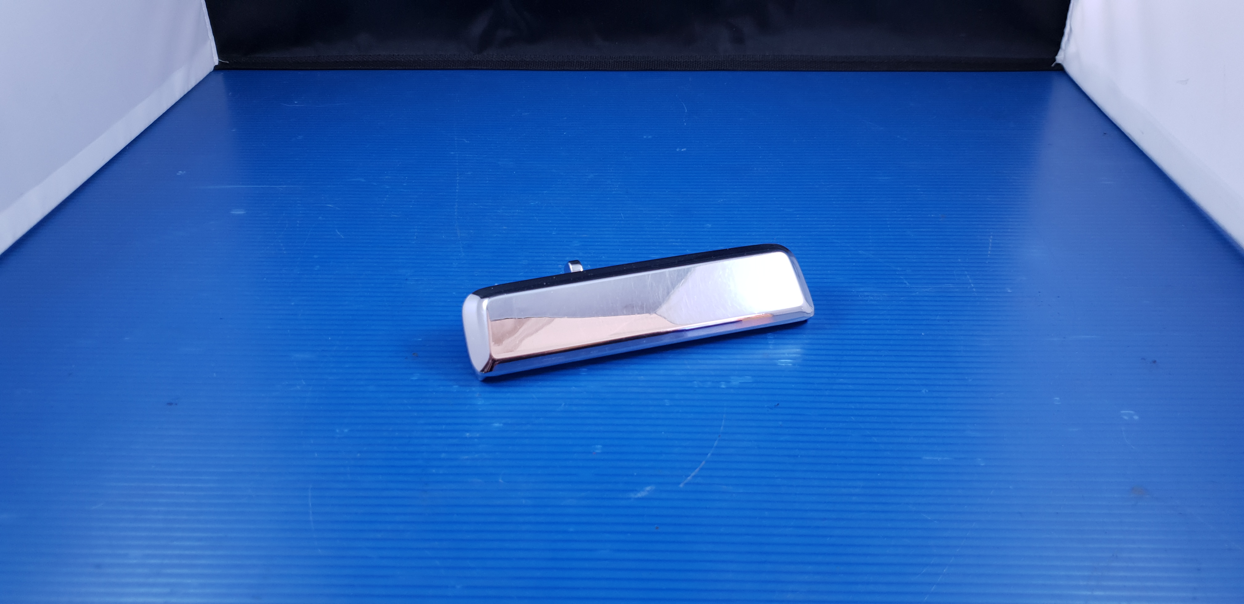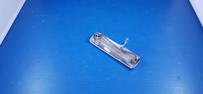 Poignée de porte extérieure gauche chromée, pièce d’origine d’occasion en bel état.